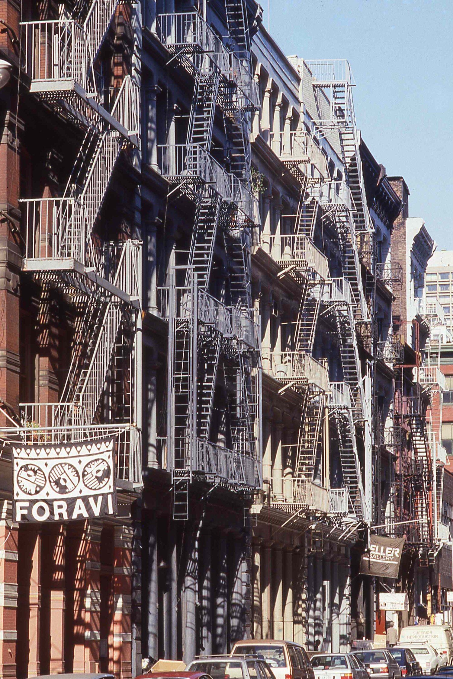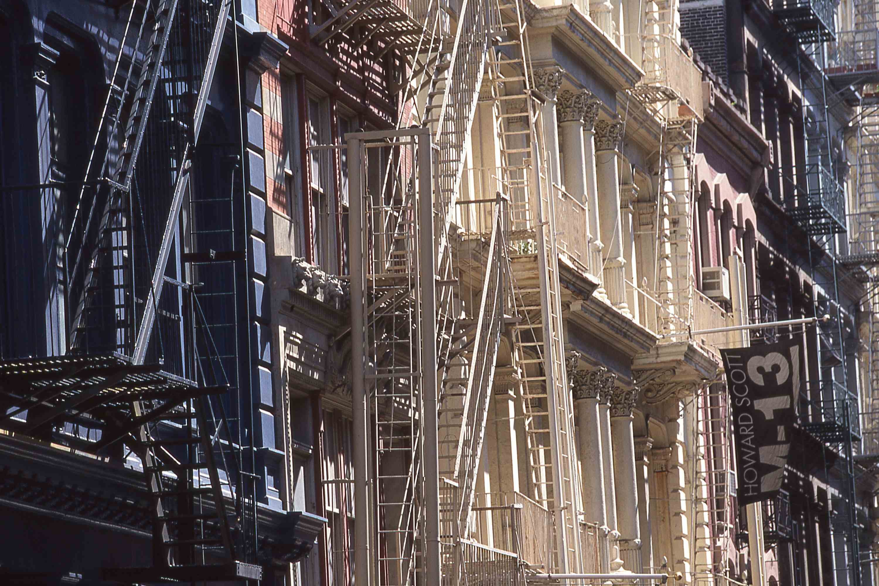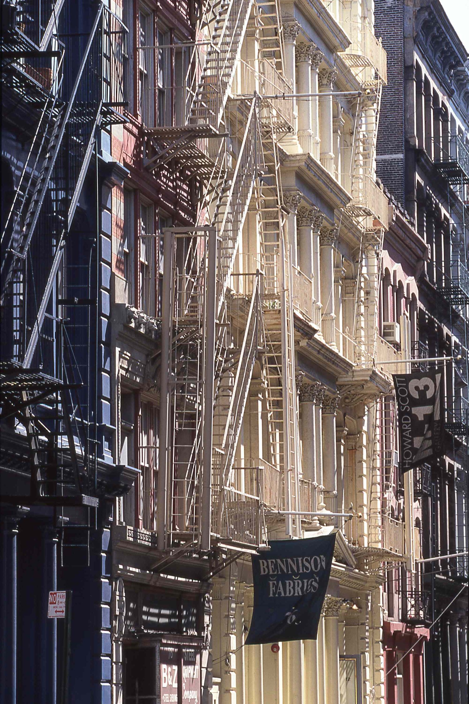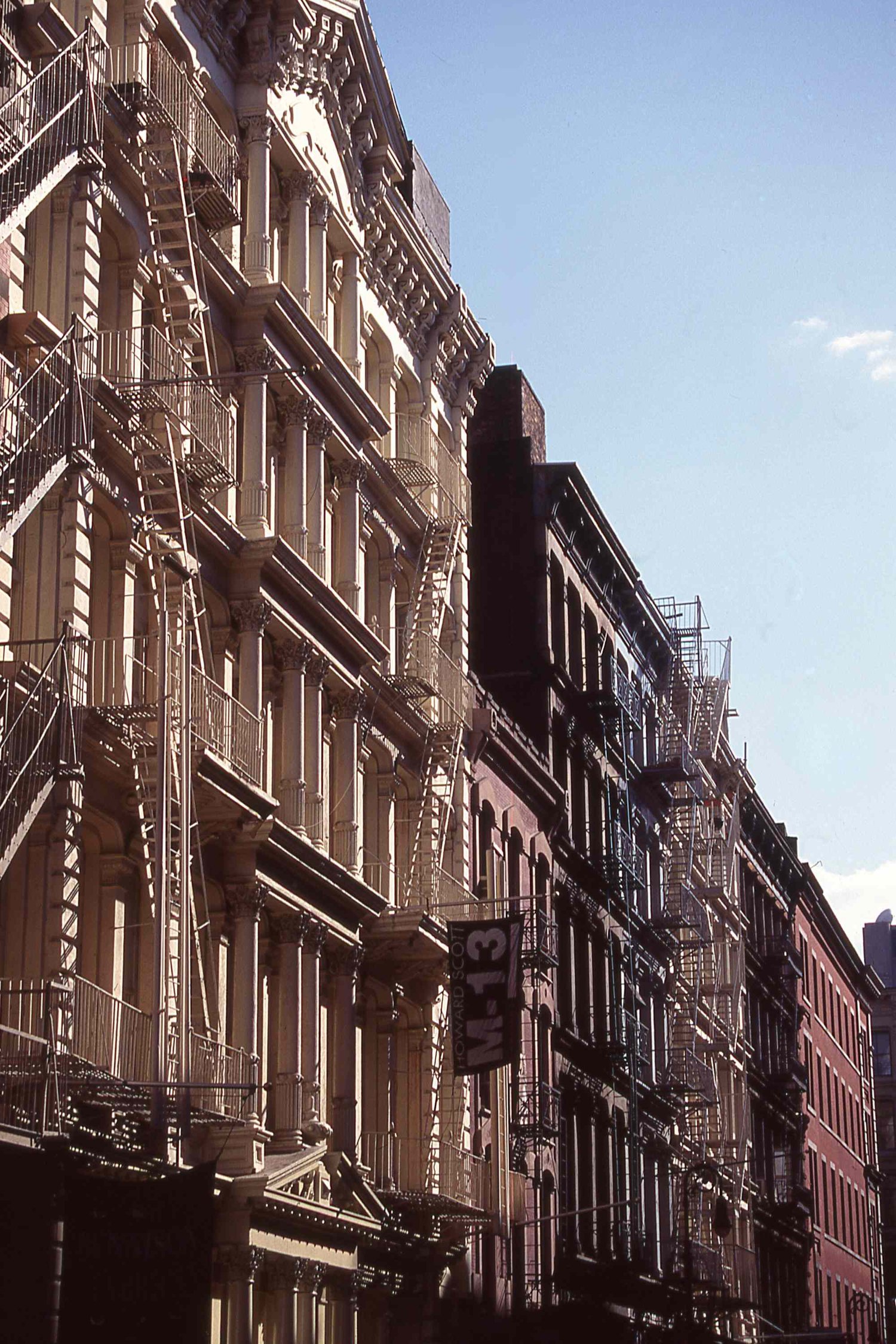 The cast iron aesthetic in New York, particularly in SoHo, embodies an elegant industrial charm, where intricate facades of iron blend with the historic architecture. These iconic buildings, with their detailed columns and large windows, once designed for manufacturing, have become a hallmark of SoHo's artistic revival.