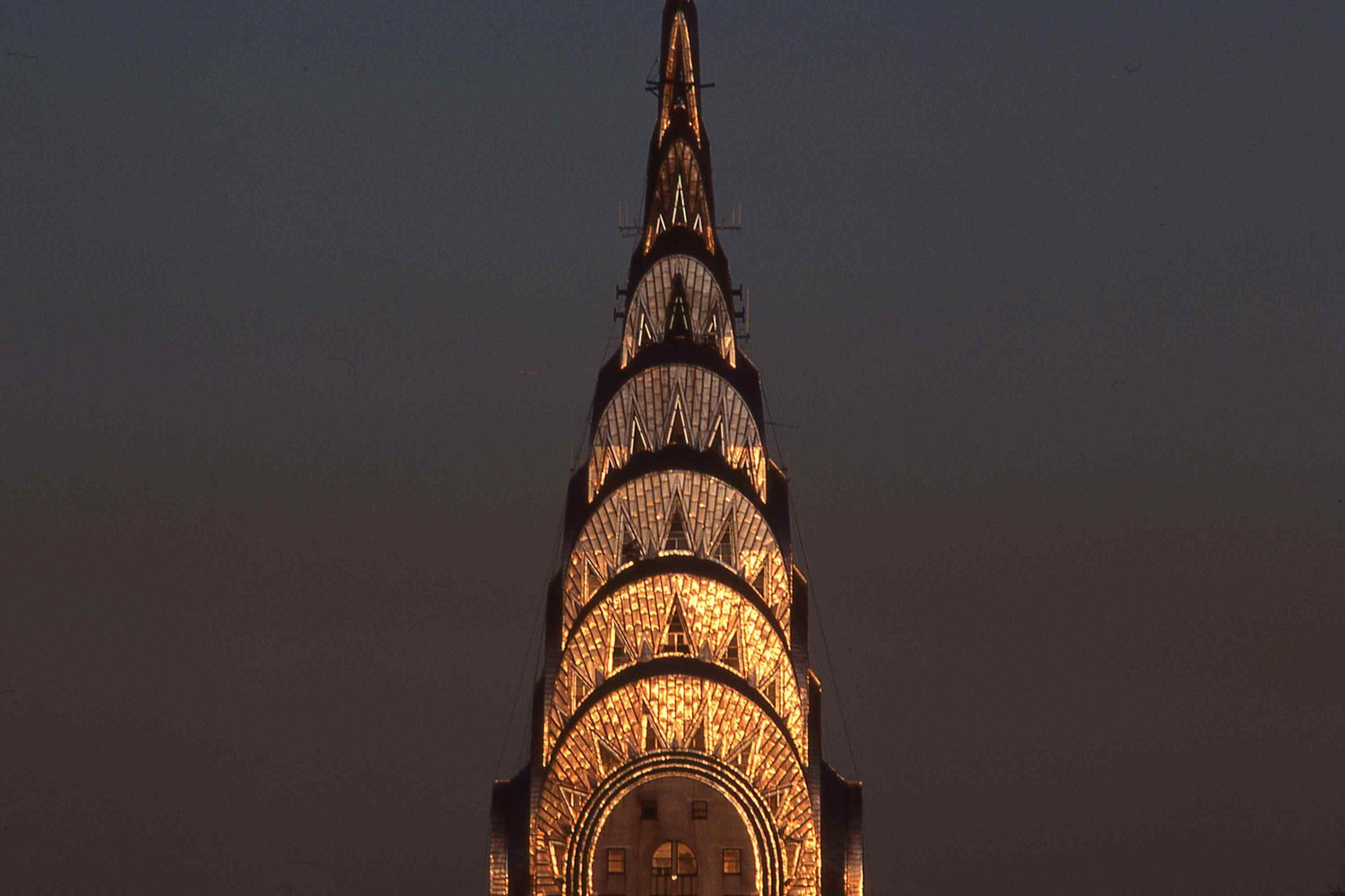 The Chrysler Building at night is a dazzling showcase of Art Deco brilliance. Sebastian created this night series in 1987.
